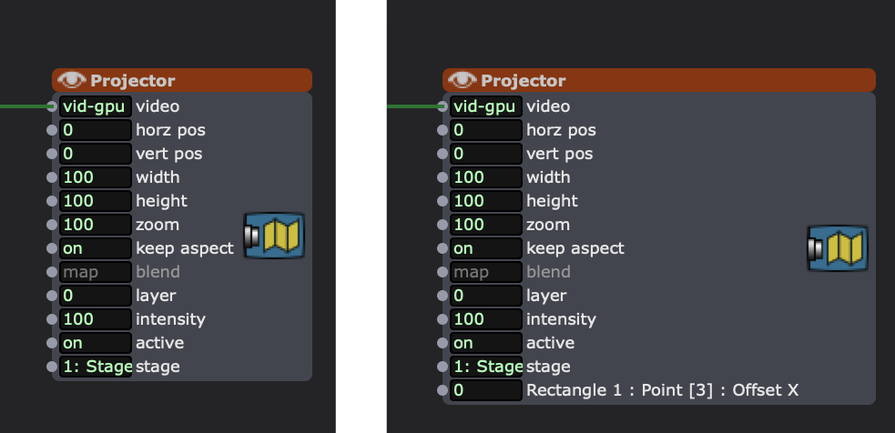 - Each projector has its own individual mapping properties. So if you copy and paste a projector (or have one embedded in a macro) it will copy all the mapping settings.