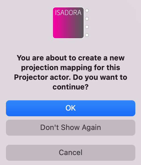 - Double left-click a Projector actor and you will be prompted with a message. (You can chose to never see this message again, or leave it as a reminder.)